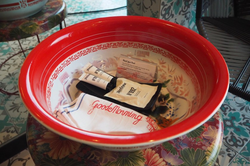 For rooms like mine without a bathtub, there will be a cosy armchair, along with a little pan and a very handy feet soaking kit, comprising bath salts, foot scrub and a Good Morning towel. Very thoughtful!