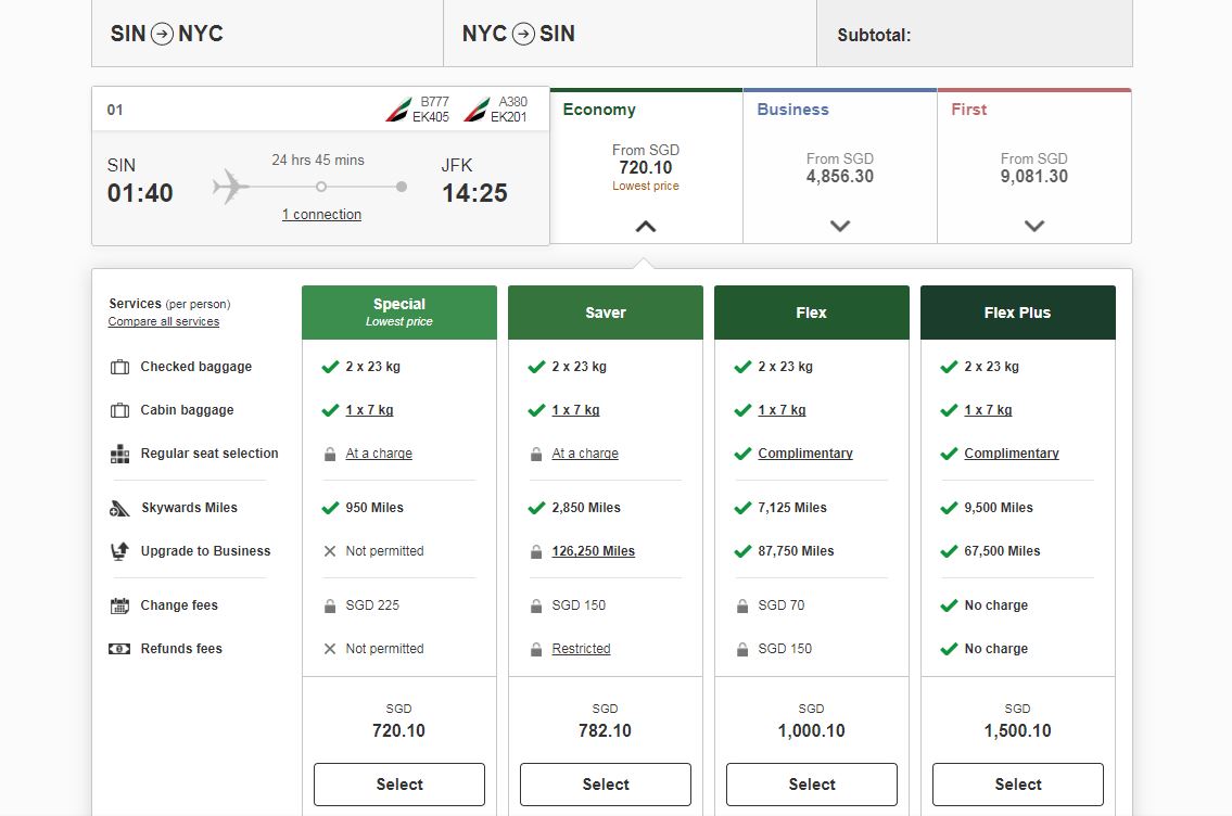 However, for travel to the US, there are Special type fares available for travel from Singapore. This means that if you book a Special fare on or after 4 February 2019, you will only get to check in one single piece of luggage no heavier than 23kg.