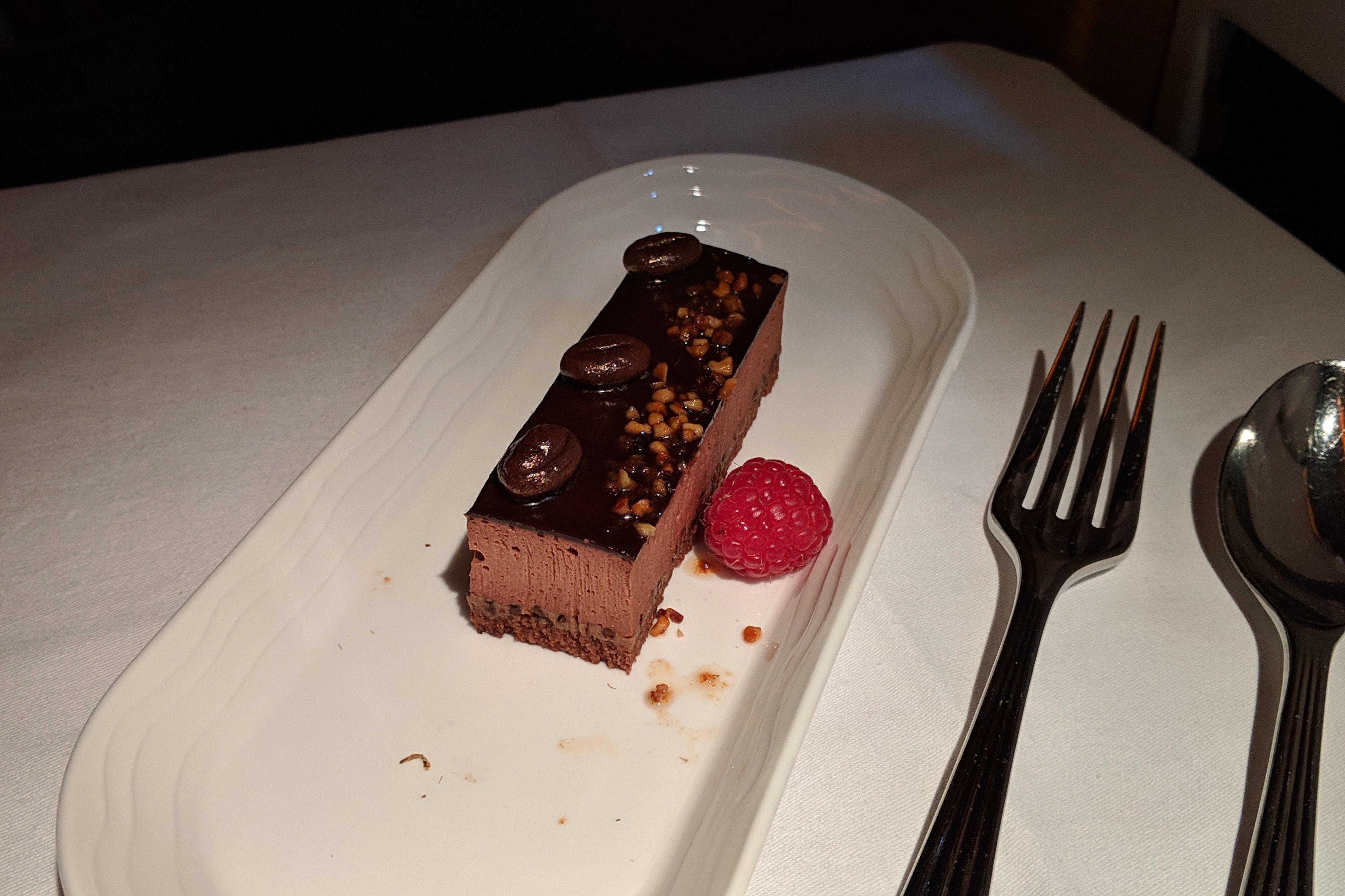 By the time I was done with my main course, my seat partner gave up on wanting his dessert and decided to head to bed instead. I pressed on.