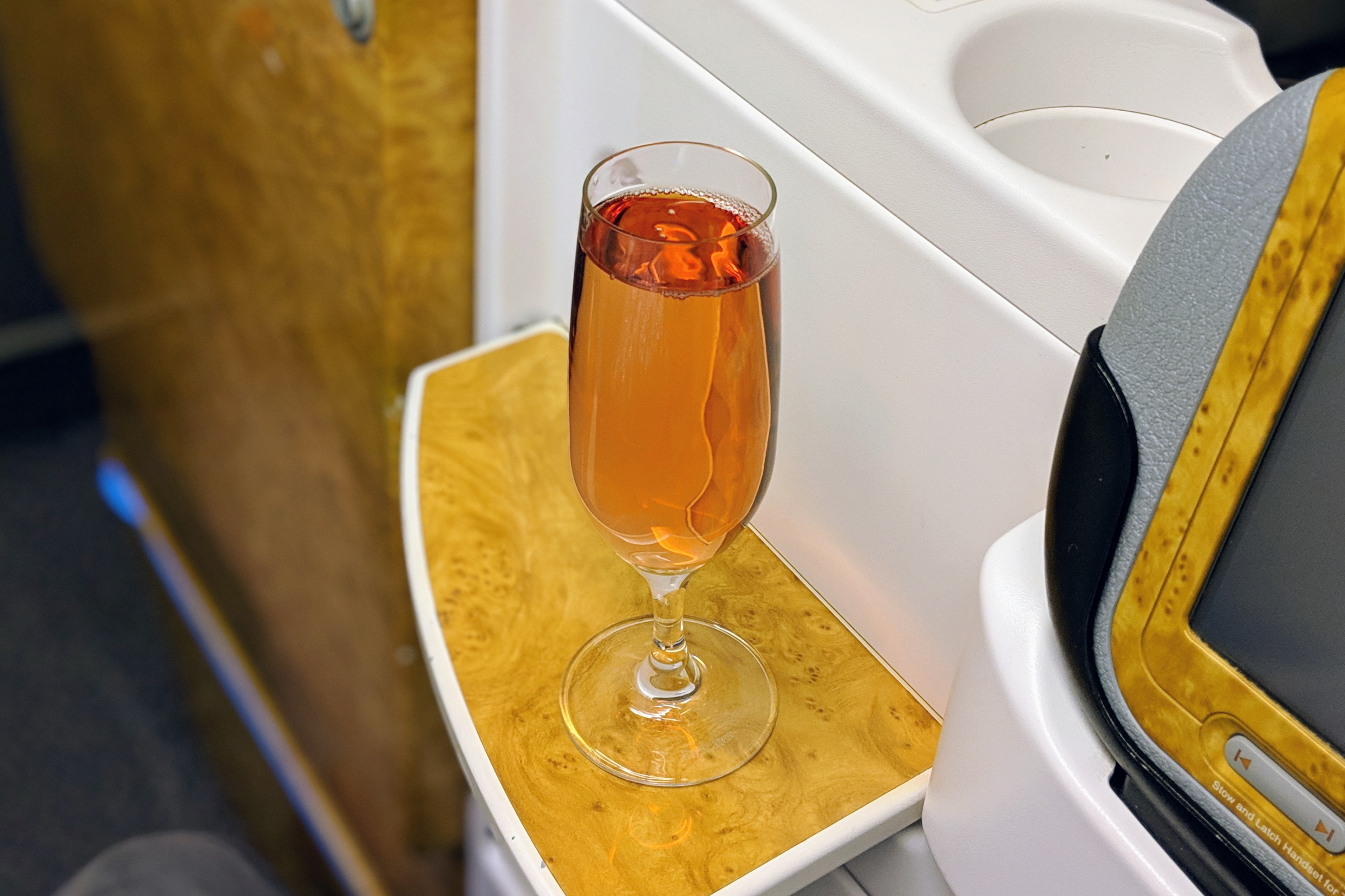 As the economy class passengers were still boarding, the cabin crew came around to offer a round of drinks. To my surprise, there was a rose champagne available for pre-departure drinks, which I naturally opted for.