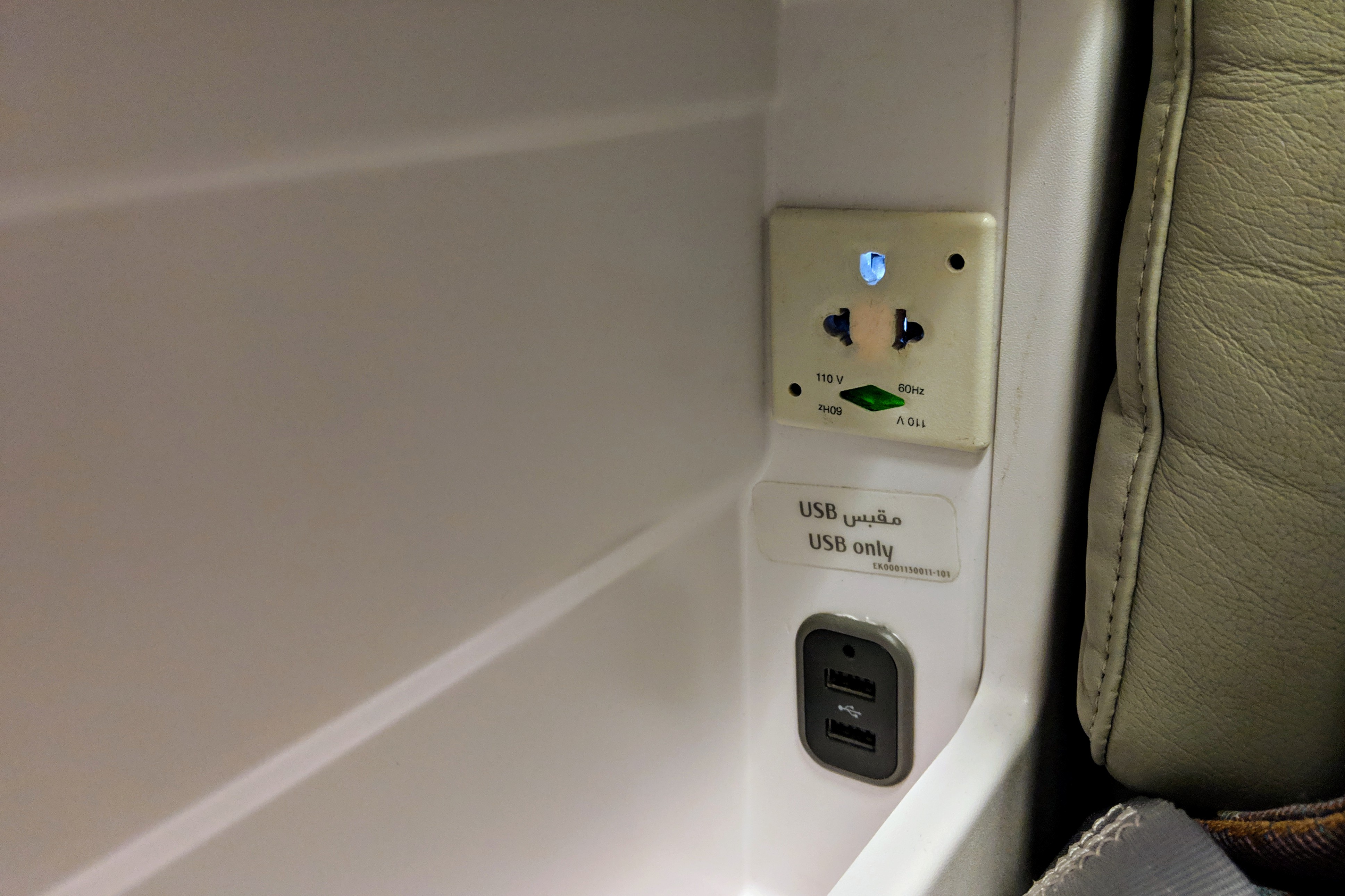 In that little space was also a power socket, as well as two USB ports that you could use to charge your devices throughout your flight.