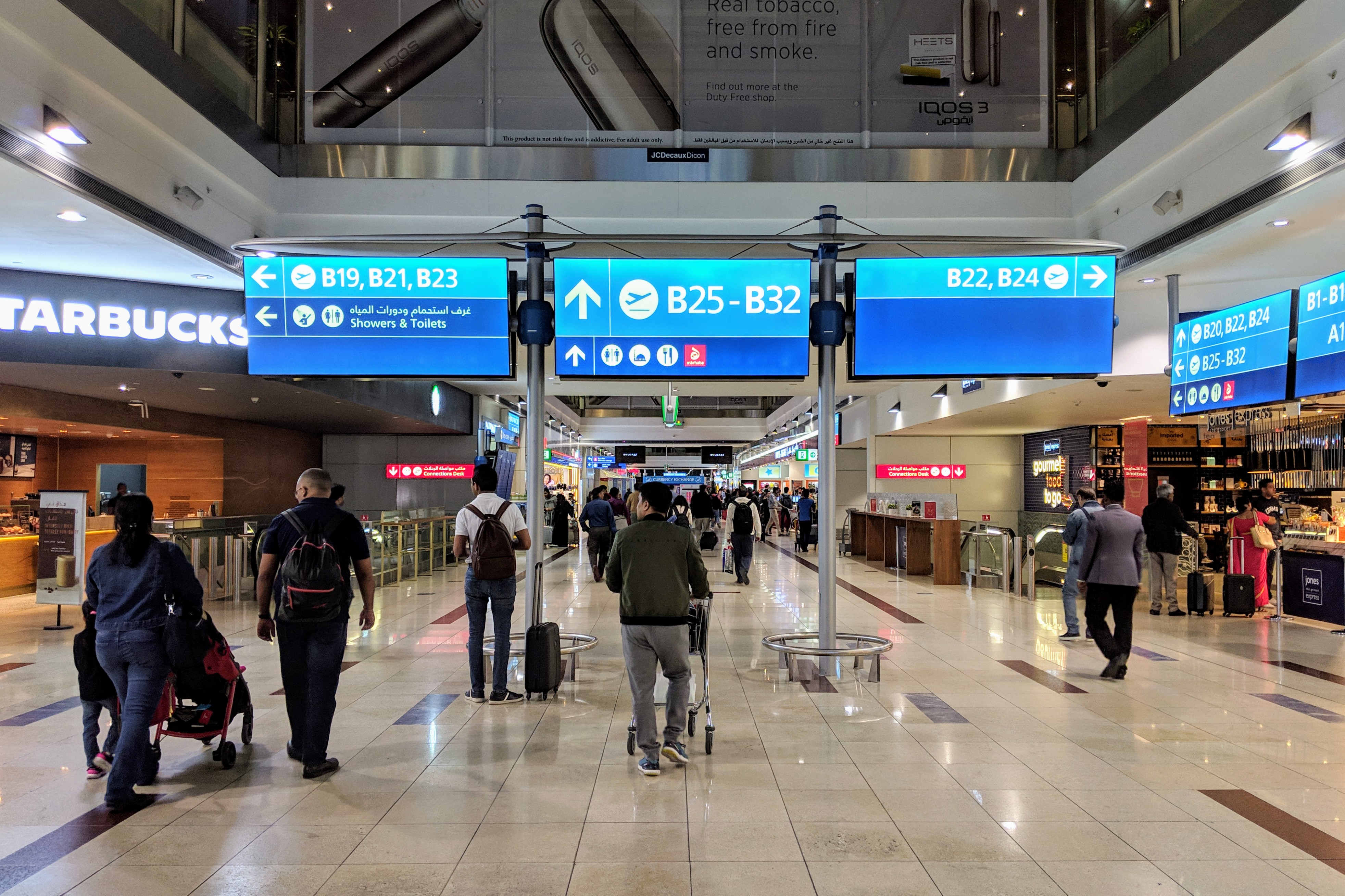 Note that Dubai Terminal 3 is huge – there are three concourses: A, B & C. The check-in area will lead you directly to concourse B after you clear immigration and security, so please leave ample time if you are flying out of A or C gates.