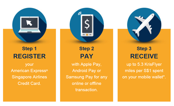 From now until 15 June 2019, Amex Singapore Airlines cardholders will earn an extra 4 Krisflyer miles per dollar spent when you use your mobile payment wallets, such as Apple Pay, Google Pay or Samsung Pay.