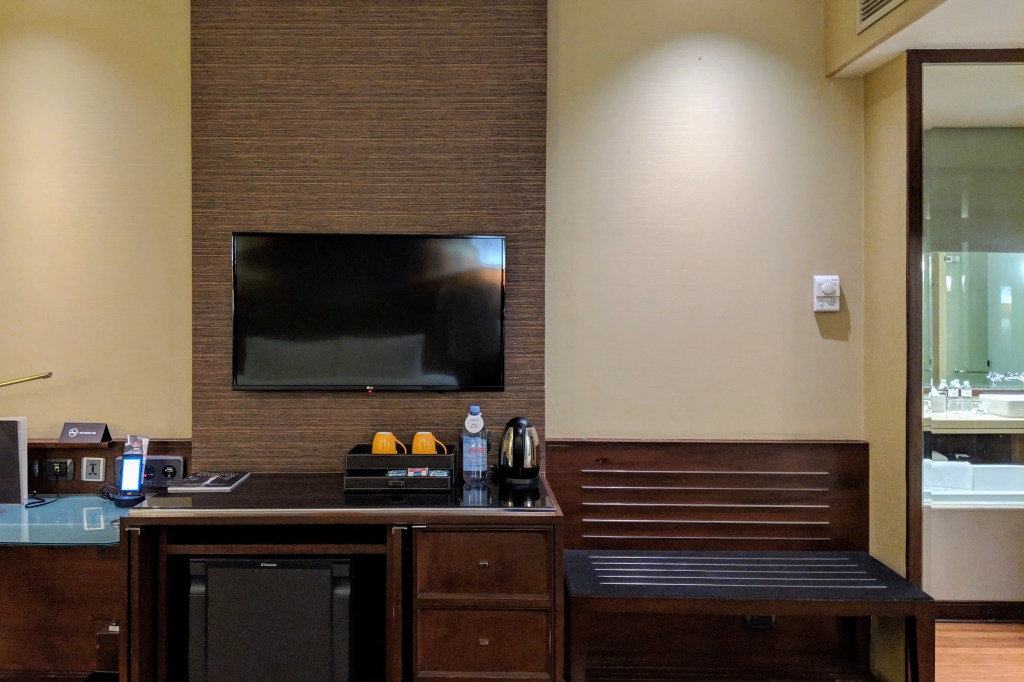 The bathroom, as with many other contemporary hotel bathrooms today, boasted see-through glass panels around the bathtub. The one big plus was that if you were travelling alone, you won’t miss out on the exciting shows on Thai television.