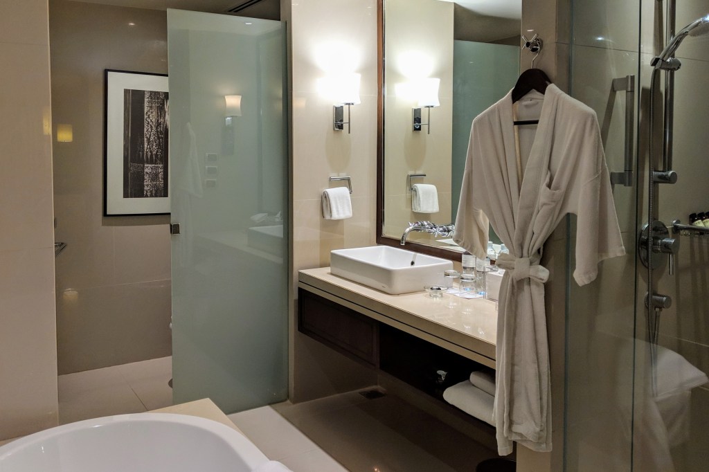 There was also a separate shower stall right across from the bathtub, as well as a large vanity and a separate toilet stall so if you are travelling with a partner, you don’t have to worry about taking a dump in full view of your room mate.