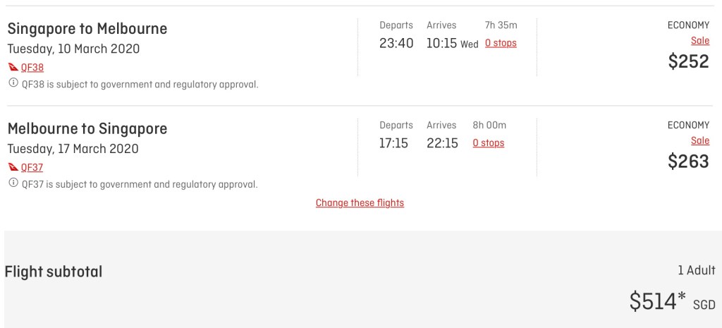 Note that Qantas do add on surcharges for travel on weekends (typically Fridays, Saturdays, and Sundays) so fares may vary a little, depending on when you intend to fly.