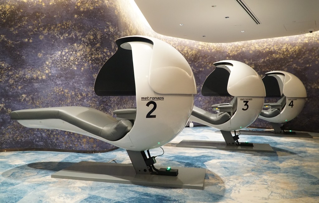 Nap pods are available for an add-on, which are $34 for the first hour and $20 per subsequent hour.