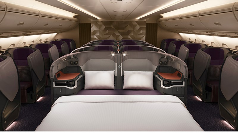 At the time of its launch, Singapore Airlines also mischievously marketed the business class seats as best in class for couples travelling together, featuring a ‘double bed’ in the new business class configuration, as exemplified by this marketing imagery: