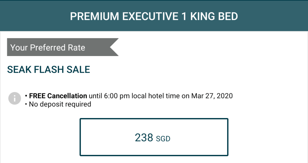 This is probably a special sale on a few counts. Firstly, sale rooms are typically not changeable or refundable, but in the face of Covid-19, rooms booked under this sale is now cancellable up to a day before the stay.