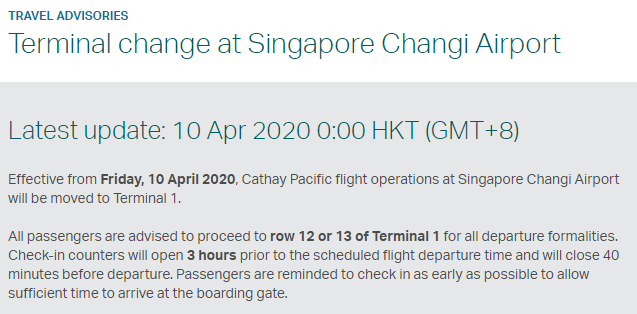 Cathay Pacific announced last week that it will be temporarily relocating to Terminal 1 since last Friday (10 Apr).