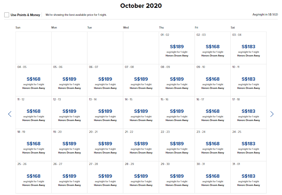 If you look further into Oct 2020, you will be able to find rates starting from S$168++.