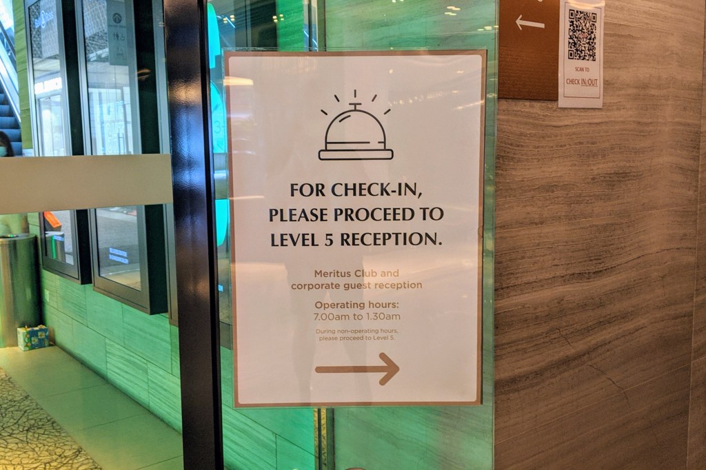 Note that the hotel has closed its ground floor check-in desks, so all check-in has to be done at Level 5 instead.