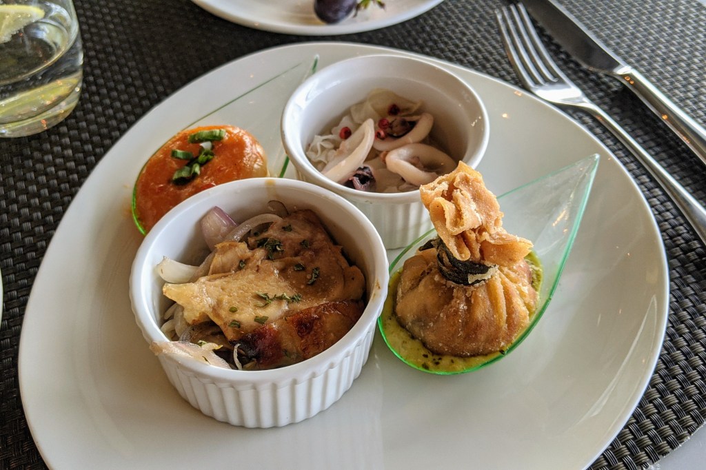 As with the afternoon tea, Mandarin Orchard has stopped serving a buffet spread for its evening cocktails, but instead shifted to a table service system. A staff came by with a drinks list to take our drinks order, while another came by with the first of our fare for the evening: a plate of cheese and nuts, and one with cold cuts.