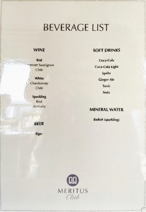 As for drinks, Mandarin Orchard’s club lounge offer a pretty standard fare, offering a choice of sparkling, red and white wines; Tiger beer; a selection of soft drinks; coffee, tea and sparkling water.