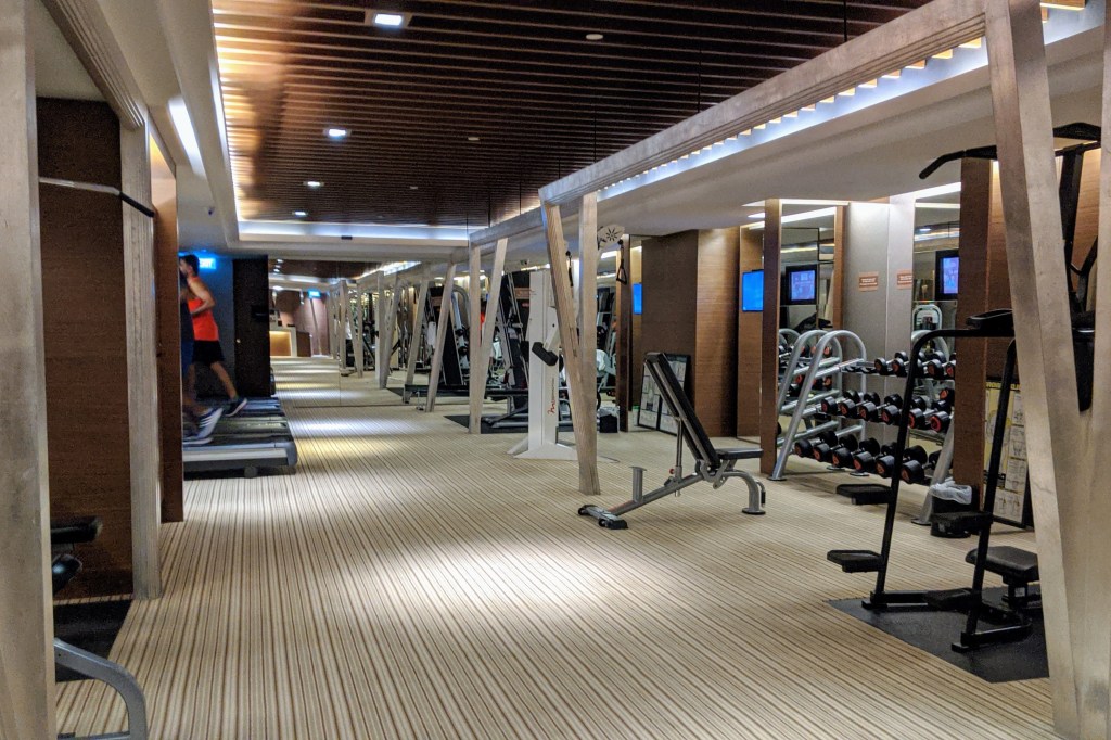 Getting to the gym is an interesting journey by itself: the lifts at the Main Tower will only get you to 36th floor, and you will have to hunt for the stairs to get you up to the fitness centre. That’s pretty much a warm up.