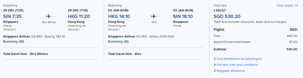 At present, there are about two flights a day between Singapore and Hong Kong: