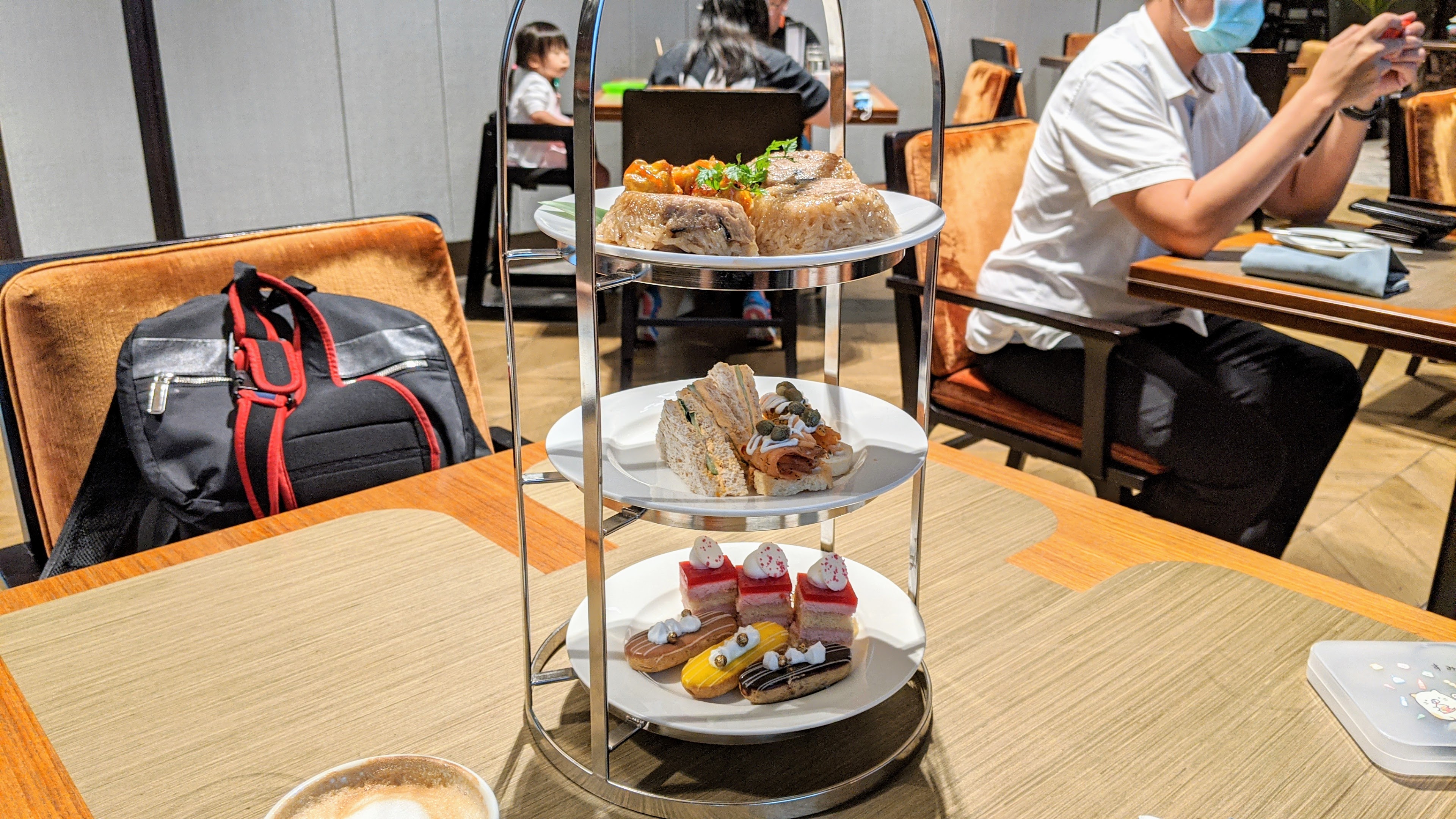 The afternoon tea was served in a three-tier tea stand, with a serving of each item for every guest. The dimsum items were right at the top, sandwiches in the middle, and the sweets at the bottom.