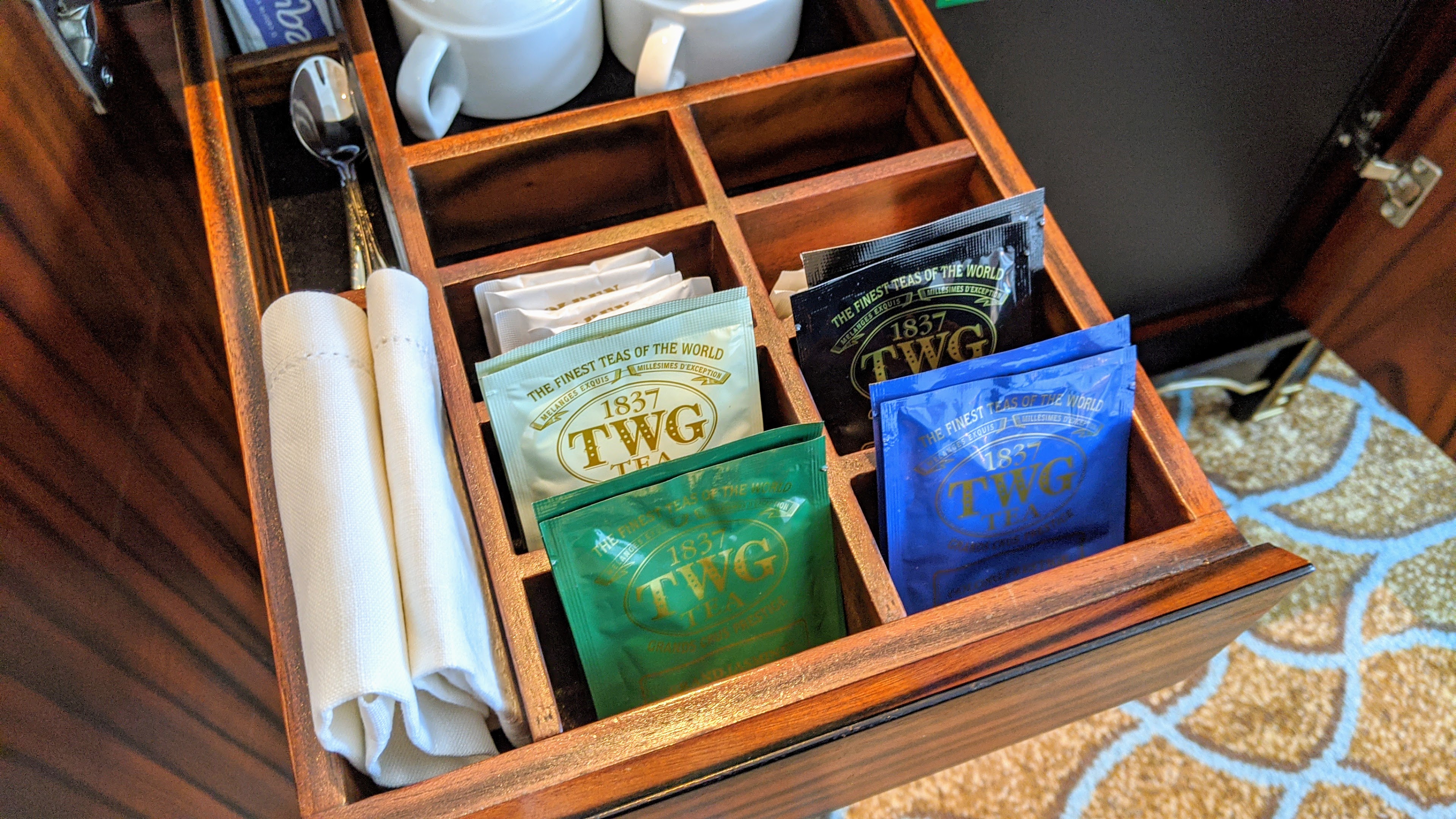 While the minibar is empty as with most hotels post-reopening after Circuit Breaker period, there was still a Nespresso machine with coffee pods, as well as TWG teabags in the room, along with some drinking water.