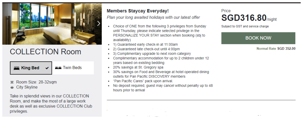 Weekend rates is at a rather hefty premium, starting at S$283.50++ for the Urban Room with breakfast, as well as S$316.80++ for the COLLECTION Room. Note that stays on Fridays and Saturdays will not enjoy the additional perks of early check-in or late check-out, or the upgrade.