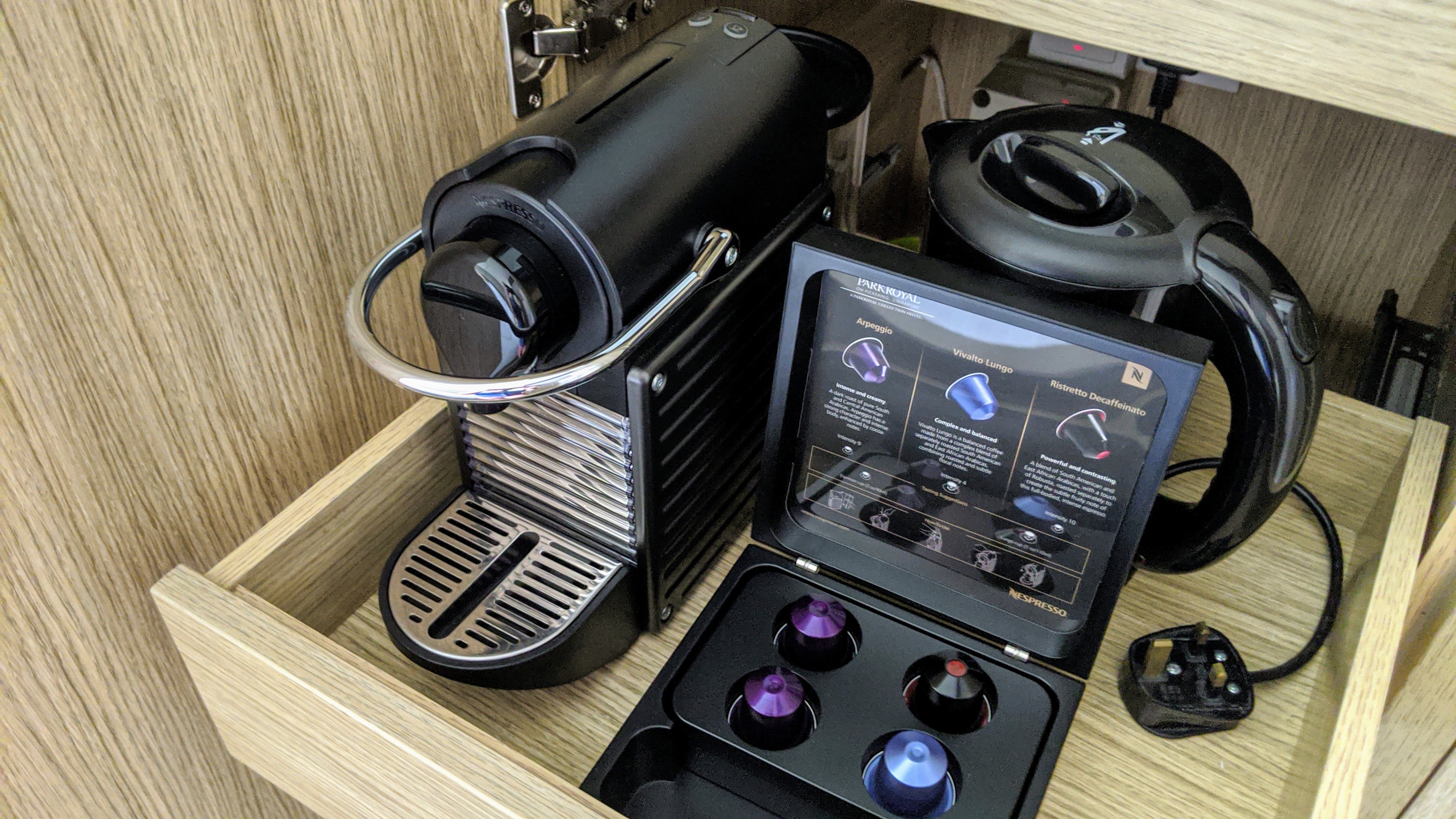 The hotel also installs a Nespresso machine in every room, so even if you don’t have lounge benefits, you can still make yourself some machine coffee with the complimentary pods available in your room.