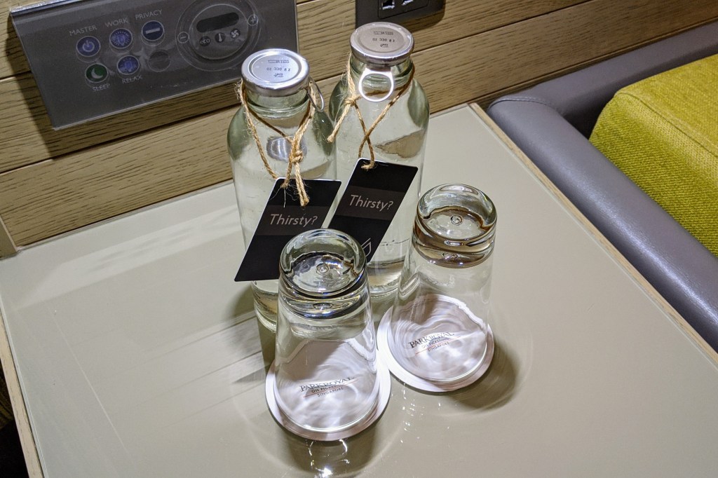 Interestingly the hotel doesn’t provide disposable bottled water. Instead, water in the room is filled in a reusable glass bottle, in a bid to be environmentally friendly. These bottles cannot be removed from the room (you will be charged for them if you do so), and will be refilled and resealed for every guest.