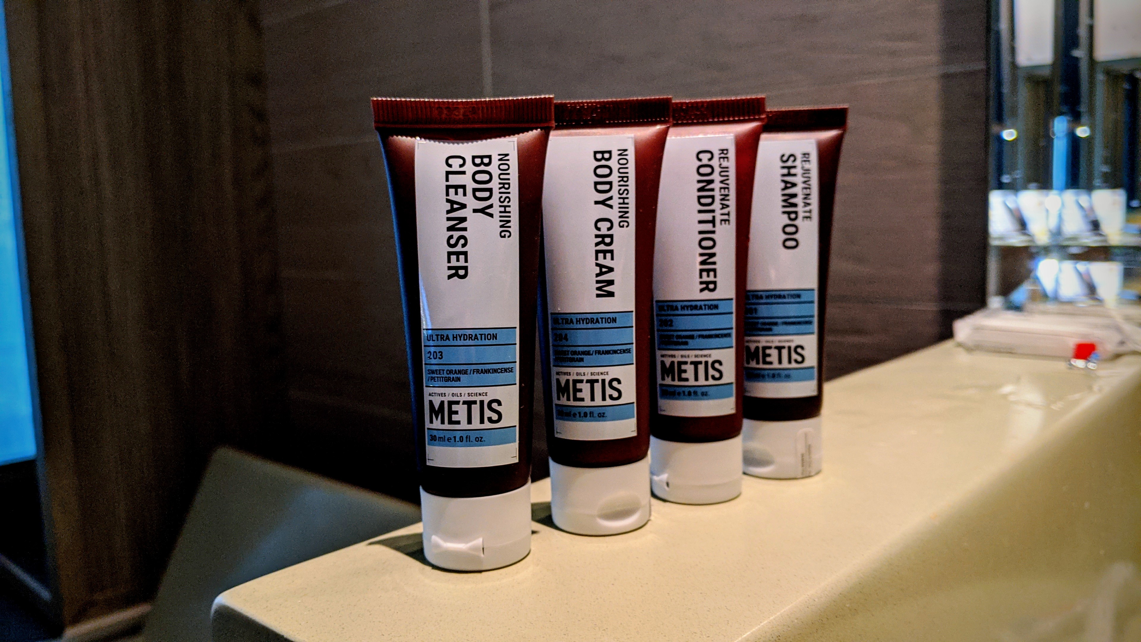 Parkroyal Collection Pickering uses Metis amenities, an Australian dermatology brand that is commonly found in Australian serviced apartments and hotels. Metis has two ranges of hotel amenities: the Daily Solution range and the Ultra Hydration range, and Parkroyal Collection Pickering uses the latter.