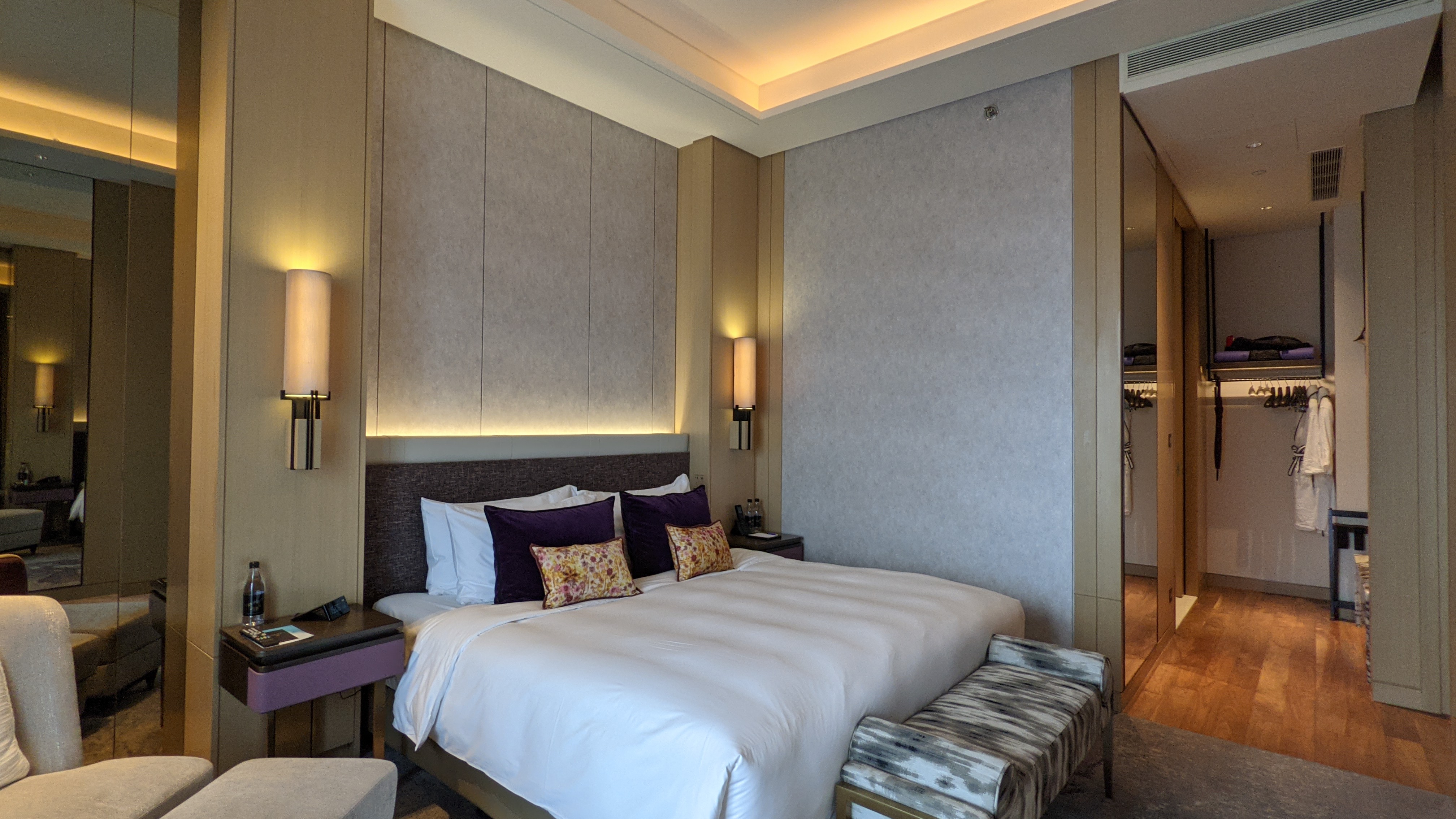 The bedroom contained a full king-sized bed, along with an ottoman at the foot of the bed. To add on to the comfort of the room, there was yet another lounge-worthy armchair next to the window, with a small coffee stand and standing lamp, looking so inviting for afternoon reads (or mobile gaming). The room also had another 55-inch wall mounted television if you prefer to lie in bed for your TV-binging.