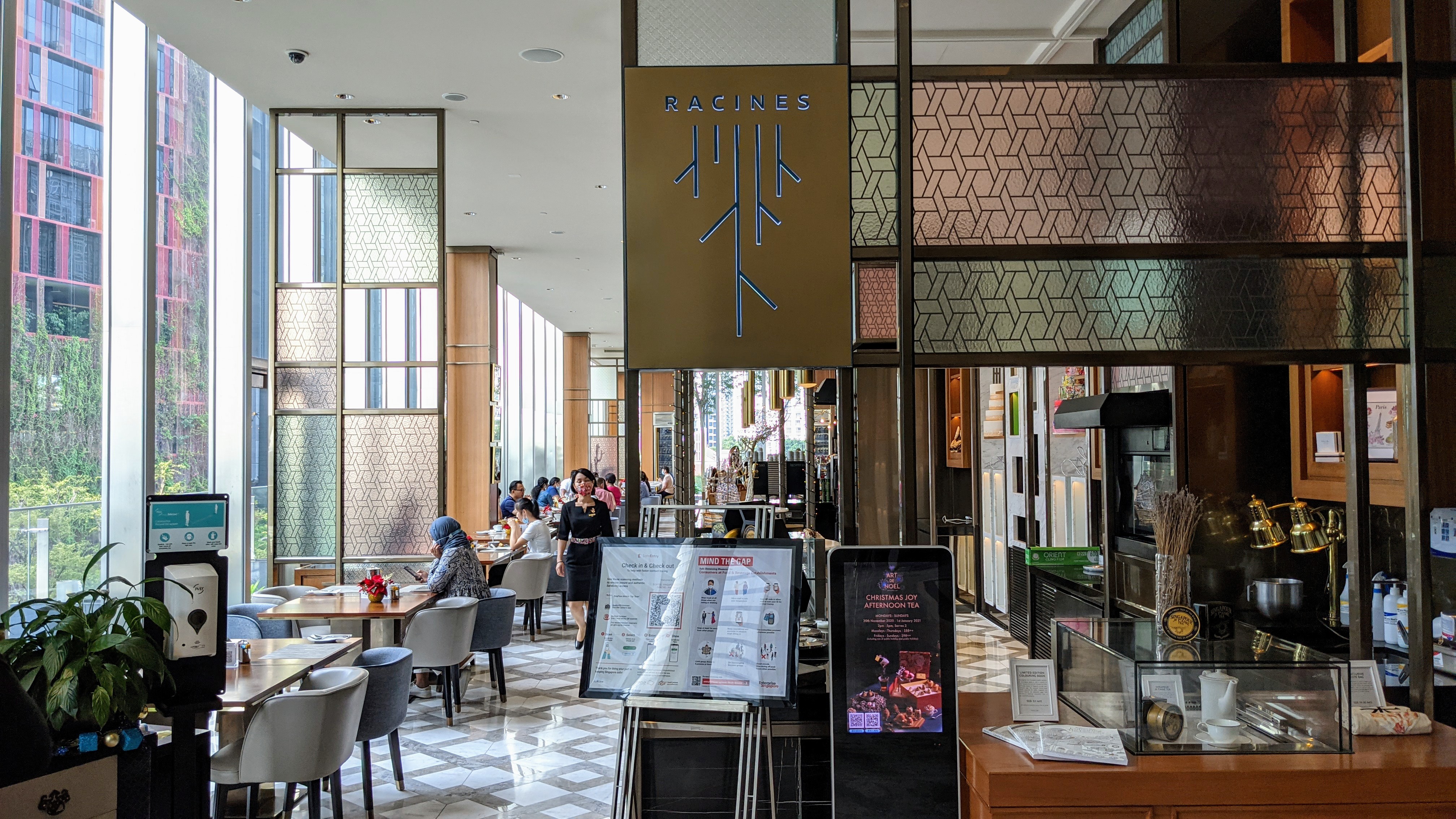 Since Covid-19 struck Singapore, the face and experience of dining has changed. Previously a self-service buffet spread, Racines now serve an a la carte breakfast that you order on your mobile phone using a customised QR code available on every table.