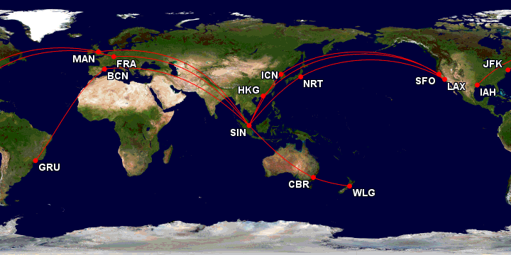 - SQ67/68 – Singapore – Barcelona, Italy – Sao Paulo, Brazil