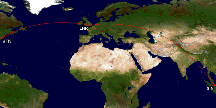 With load factors at an all-time low, the A380 seems like an unlikely candidate for any service out of Singapore, but this would allow Singapore Airlines to carry enough passengers from Singapore to London and New York on a single aircraft, with enough room to spare to ferry passengers between the two Transatlantic financial hubs.