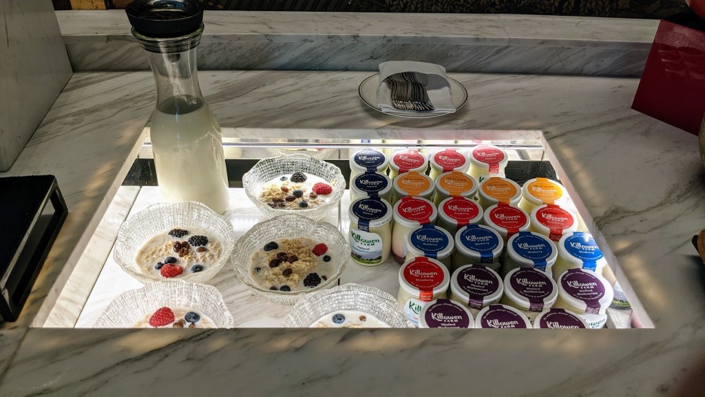 On top of that, there is also a mini continental breakfast items spread available within the Summit Room, with bread, pastries, charcuterie, fruit, yoghurt, cereal and cheeses for one to pick and choose from. If hot food is not your thing, this would have been more than enough to fill you up