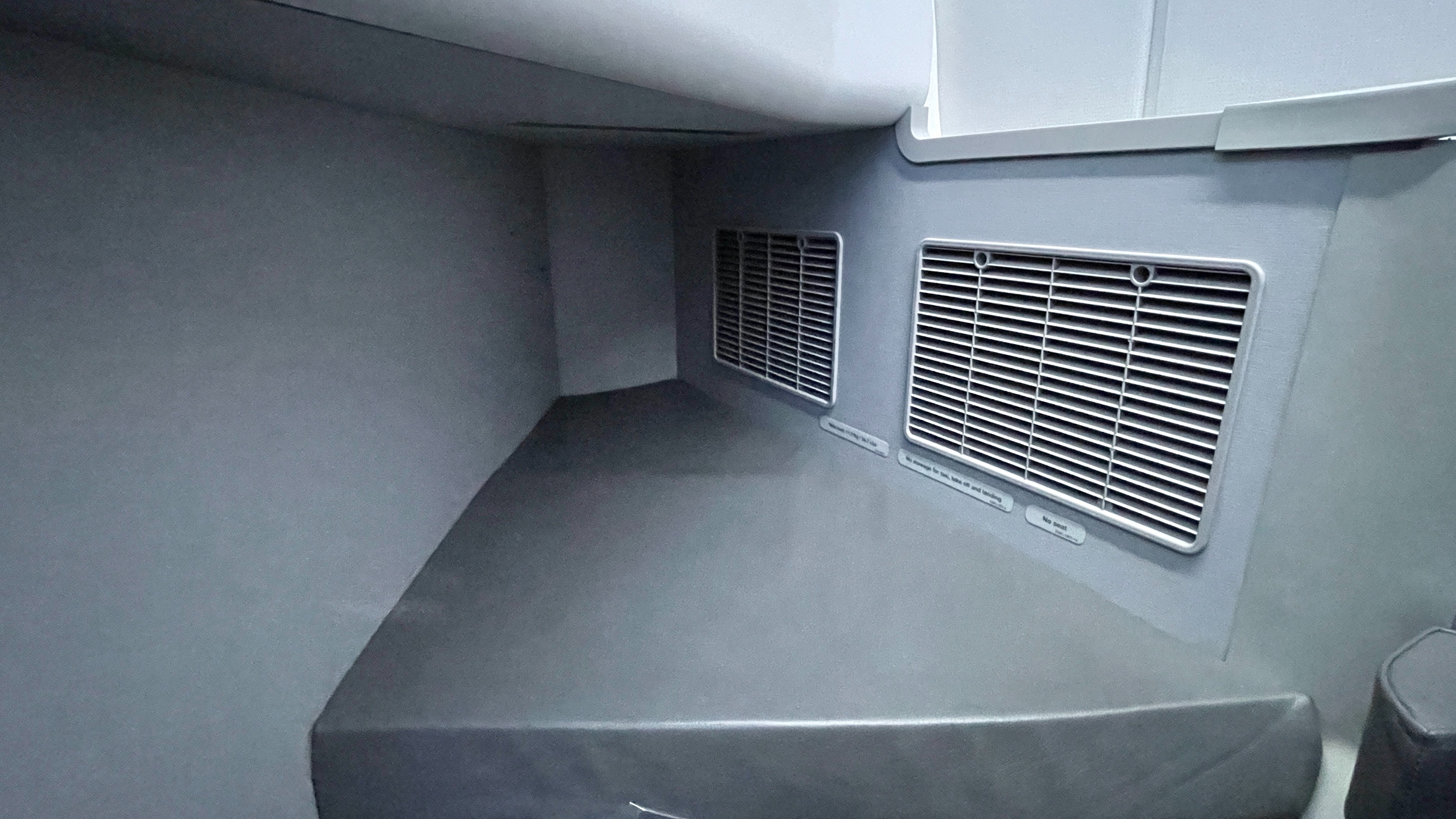 Another way to control the screen is to use the remote control stowed to the side of the seat. Along with it you will also find the headphone jacks, a USB socket and a power socket. There’s also a reading light should you need one.