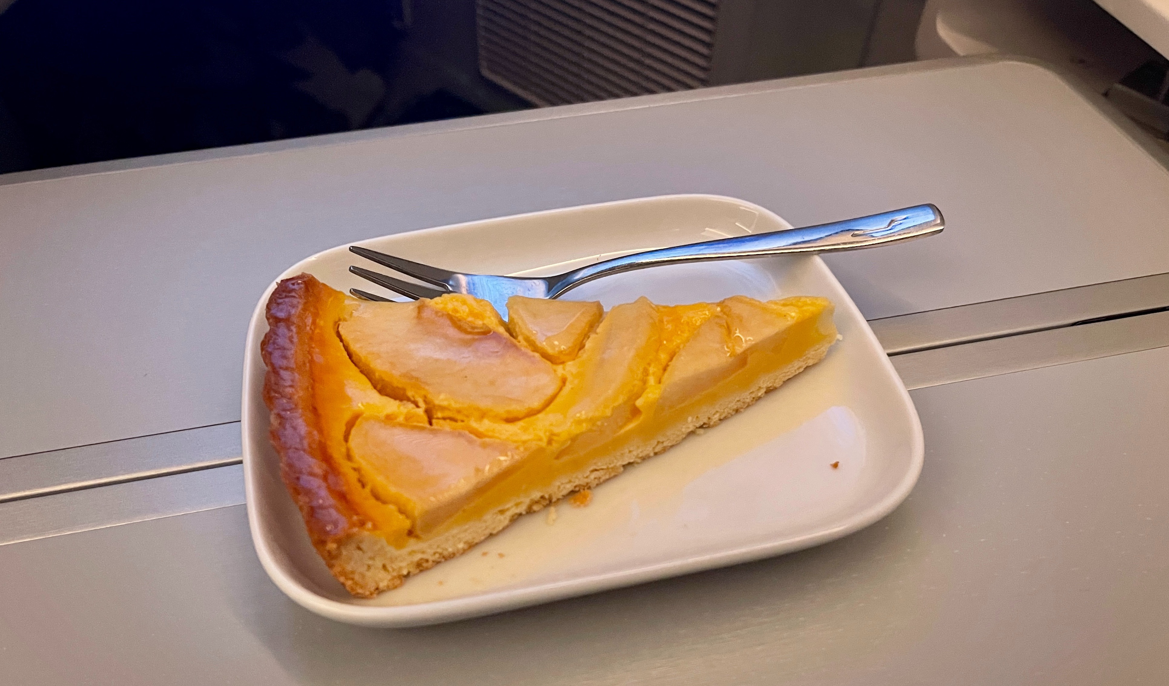 When I was done with the meal, my tray along with the tablecloth was cleared promptly, before the crew brought around a tiny serve of the apple tart dessert i chose beforehand. Again, I was rather disappointed, I must say, having had excellent apple pies during my stay in Deutscheland.