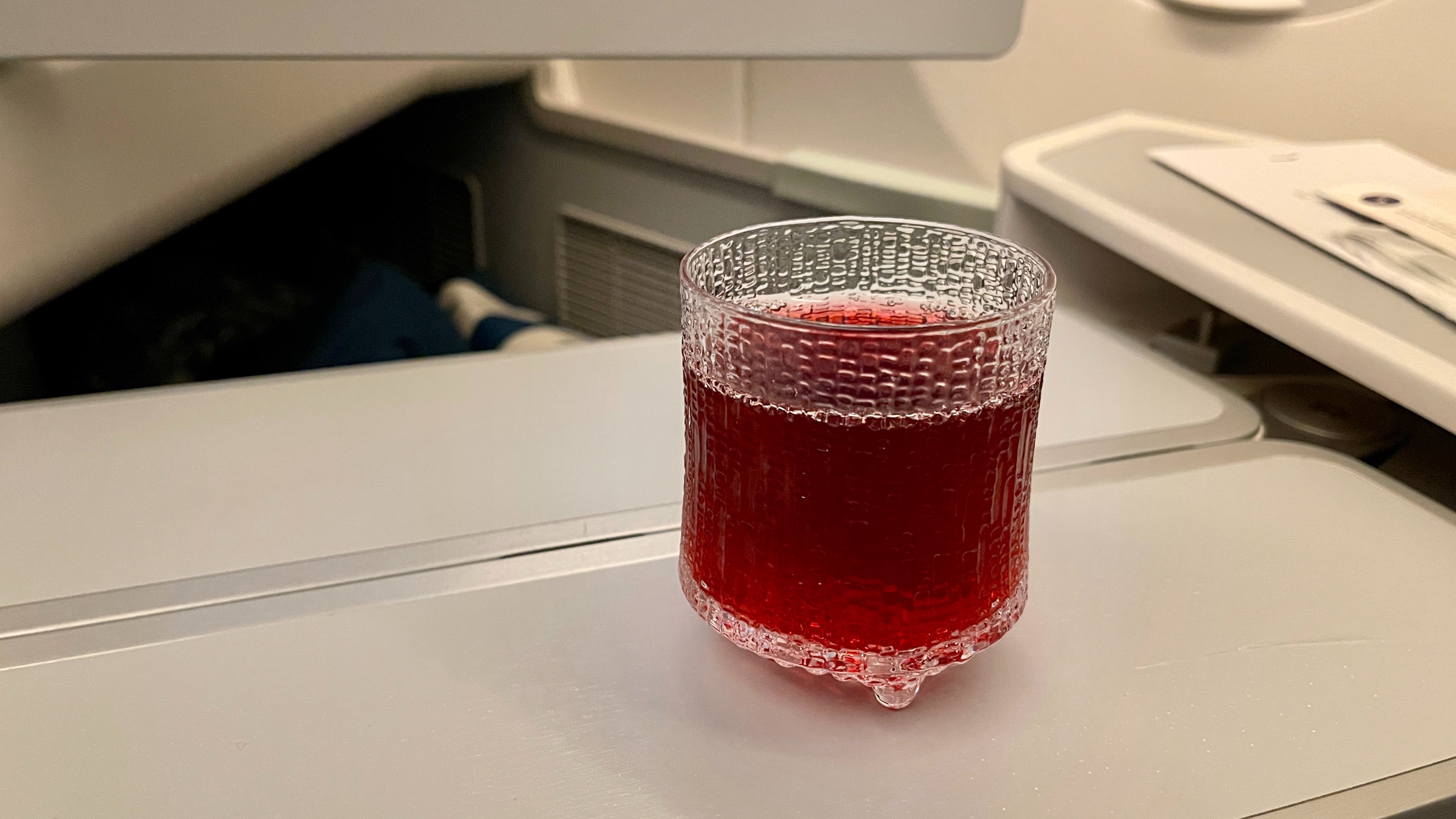 Shortly after I have settled in, the cabin crew came around to offer a welcome drink of champagne, water or Finnair’s signature blueberry juice.