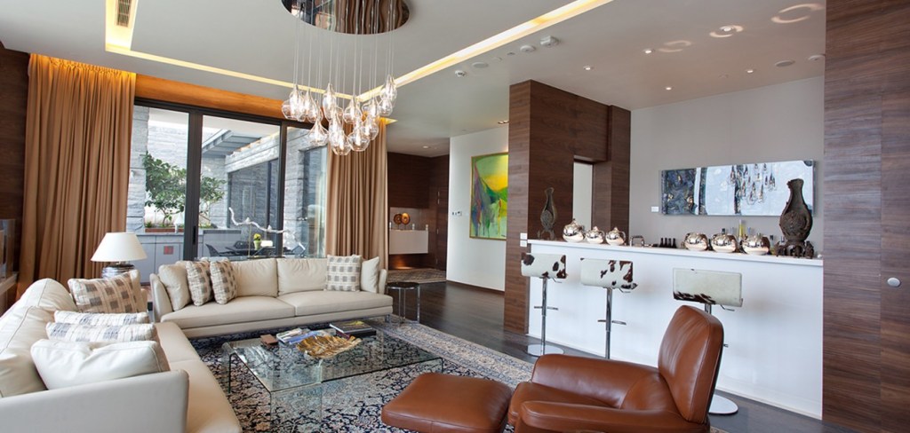The Persian Nain carpets were the first items selected for the Presidential Villa; together with the expansive view of the cityscape from the window, they dominate the living and dining rooms. Even the coffee table is transparent as so not to obstruct the view of the carpet. The few accents placed on the edges of the salon are specially selected to reflect the interests of one who collects for the pure enjoyment and sharing of knowledge, created by the introduction of different cultures and art influences into a harmonious whole. Two 12th and 13th century Khmer jars in unobtrusive brown glaze introduce the viewer to an era in Southeast Asia that tells the history of Indochina.
