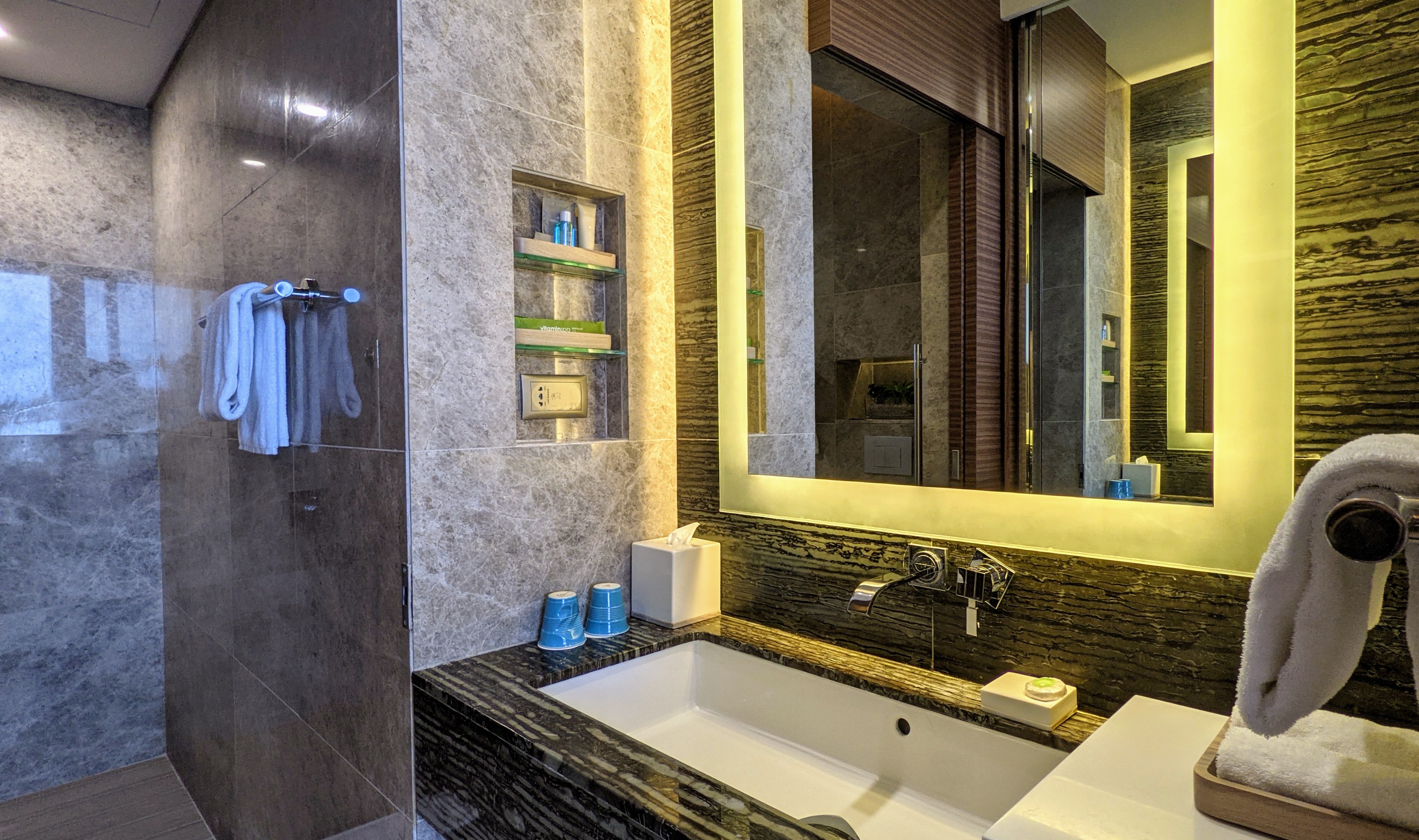 The room, while comfortable, also lacked the deckings of a luxury hotel: the bathroom for one, felt more like a serviced apartment-style bathroom, built more for efficiency than a luxurious experience.