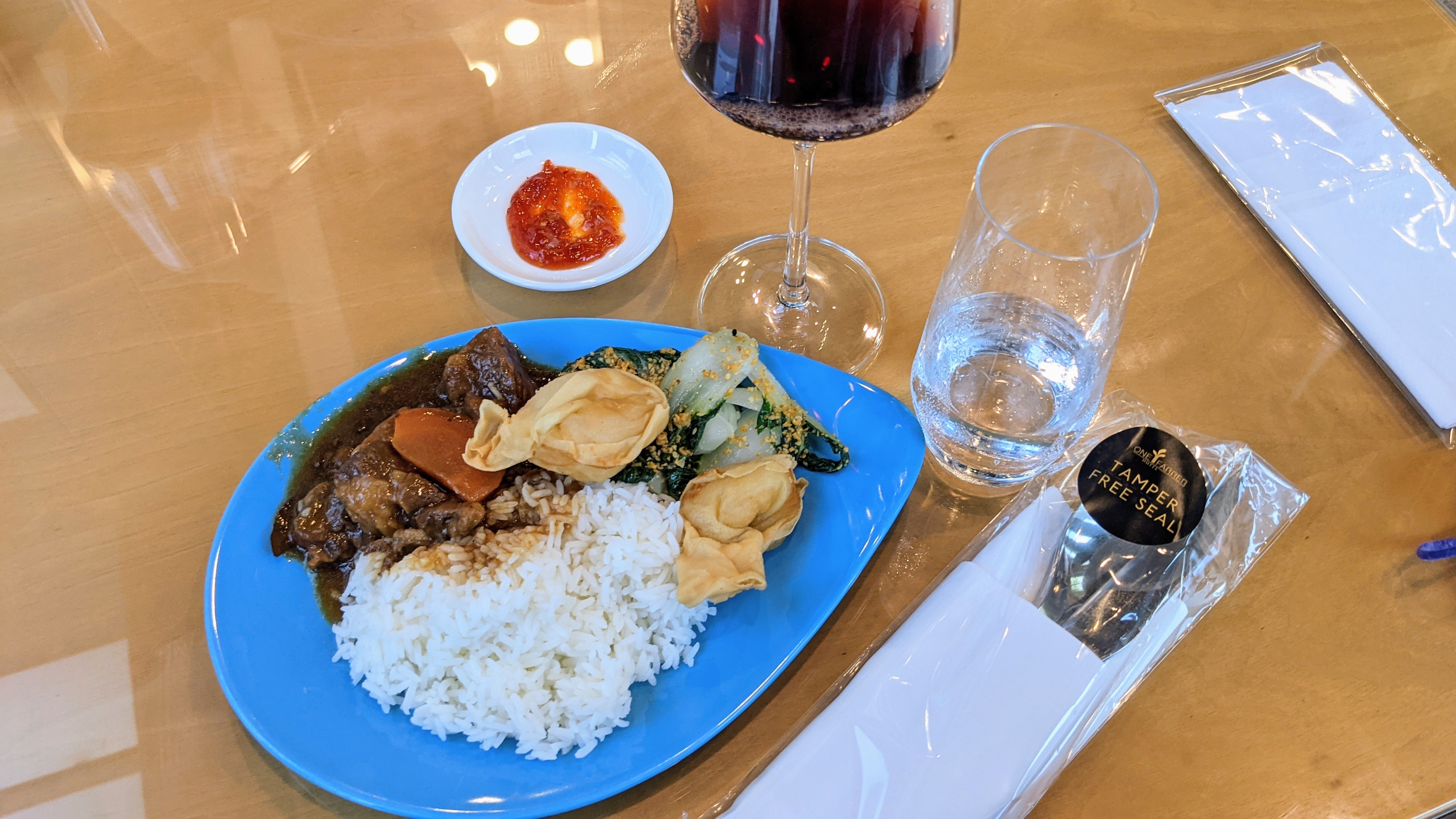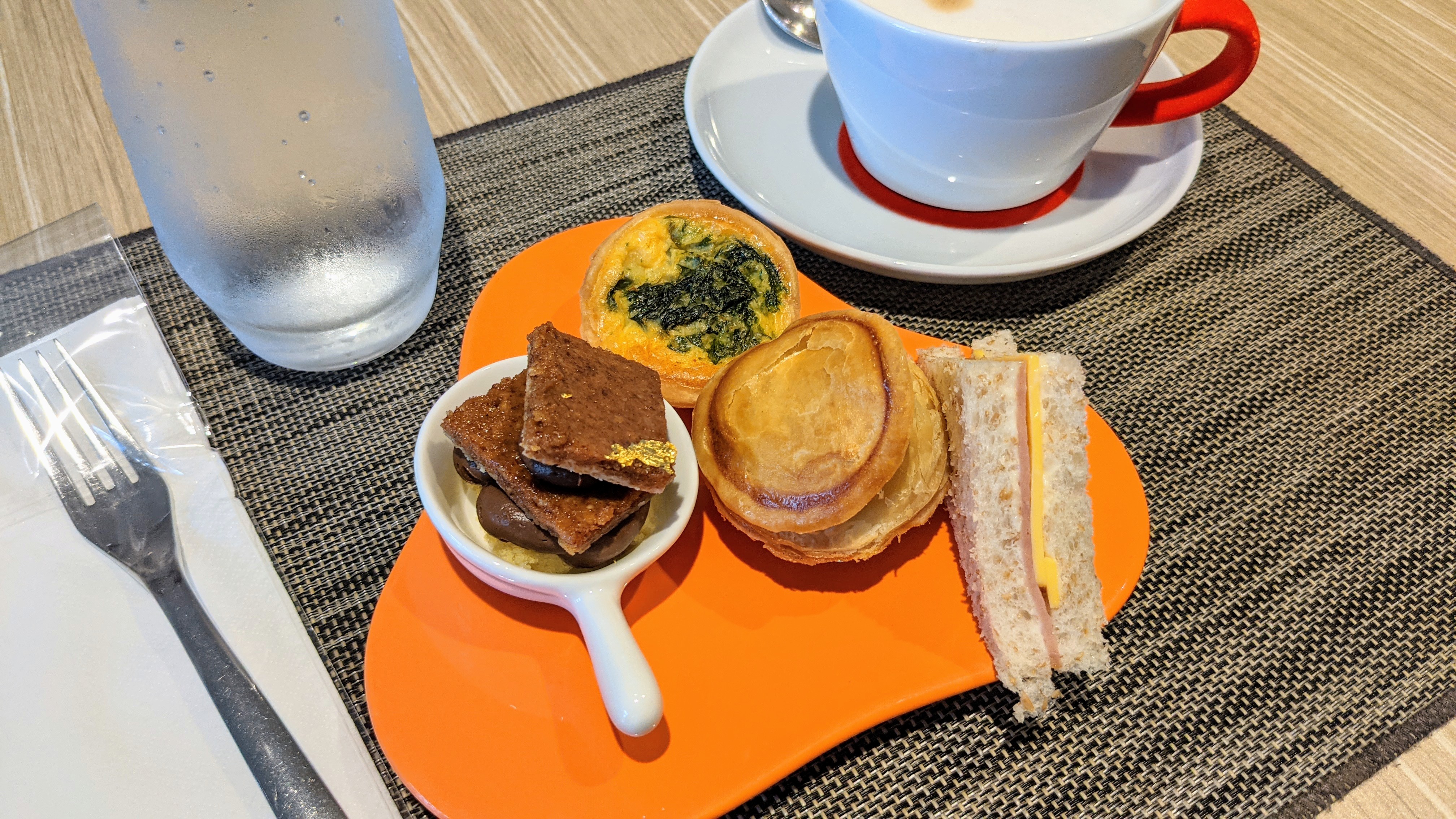 Again, the items were picked from a buffet line by the lounge staff. The plating leaves much to be desired, but one could forgive if they saw how busy the lounge was in the morning, with only three wait staff buzzing around.