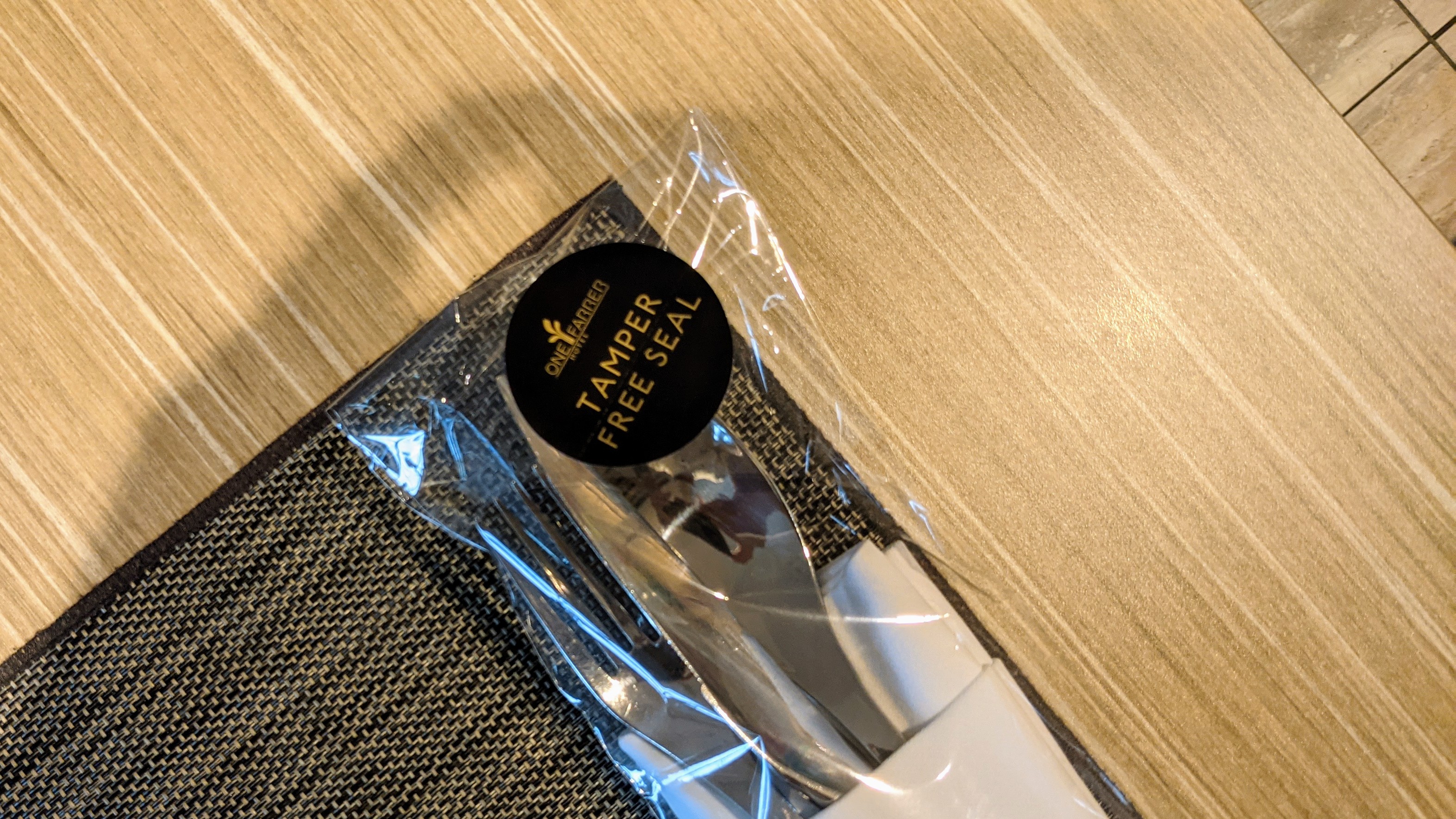 To give guests a further peace of mind, all the cutlery used are wrapped in a plastic wrap and sealed with a tamper-proof sticker.