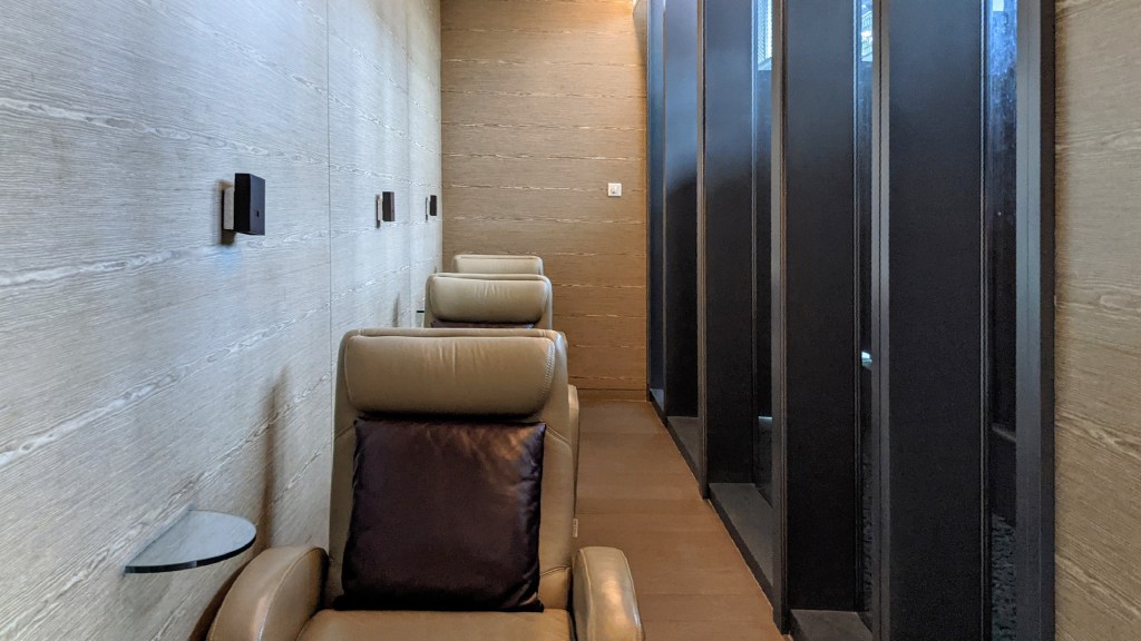 There are also several snooze chairs in the changing rooms you could use, although I found them to be too public to get any decent rest. These armchairs should have been facing the other direction, in my opinion.